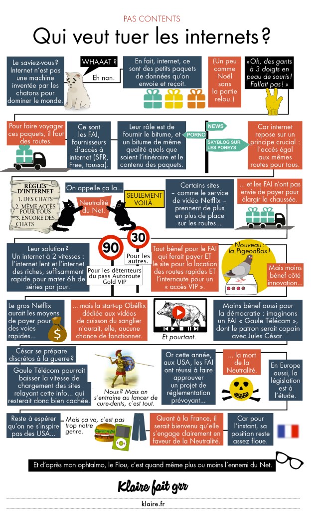 Au-delà de mon activité de vendeuse sur Etsy, la neutralité du net doit être défendue par tous les citoyens. C’est le principe sur lequel s’est fondé internet pour que les communications entre ses utilisateurs, quelles qu’elles soient (échanges avec ses proches, achats sur un site, recherche d’information, lecture) soient transmises de la même façon sans « discrimination », sans que l’un prime sur l’autre. Remettre en cause cette neutralité reviendrait à brider ou à bloquer certains contenus ou applications au profit d’autres. Je veux pouvoir continuer à écrire sur ce blog, à vendre mes produits ou à communiquer avec mes proches sans me demander si cela est possible au vue de l’heure, du trafic, etc. Sans la neutralité du net, notre vie serait vraiment différente !