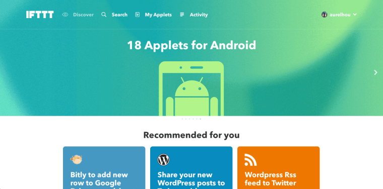 J’utilise aussi l’application IFTTT. Elle me permet d’automatiser une partie de mes publications sur les réseaux sociaux. Le principe est simple : vous y renseignez vos différents comptes et vous écrivez des recettes (appelés applets dans IFTTT) en y mettant les éléments que vous souhaitez voir apparaître. Par exemple, j’ai une recette qui permet de connecter mon compte Instagram à ma page Facebook. Lorsque je publie une photo, elle est automatiquement publiée sur ma page Facebook et ajoutée à un album nommé « Instagram ». J’ai d’autres recettes pour publier de ma page Facebook à mon compte (personnel) Facebook. J’ai essayé beaucoup de recettes différentes avant de trouver celles qui me conviennent parfaitement et qui donnent le résultat que je voulais. Il n’y a pas de miracle, cela est aussi du travail !