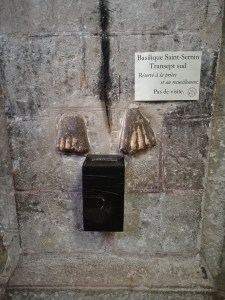 Dans l’Église Saint-Sernin, vous passerez peut-être à côté d’une colonne d’où sortent des pieds sculptés.