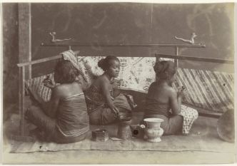 Femmes fabriquant du batik sur Java, anonyme, 1880 – 1910, source : Rijks Museum