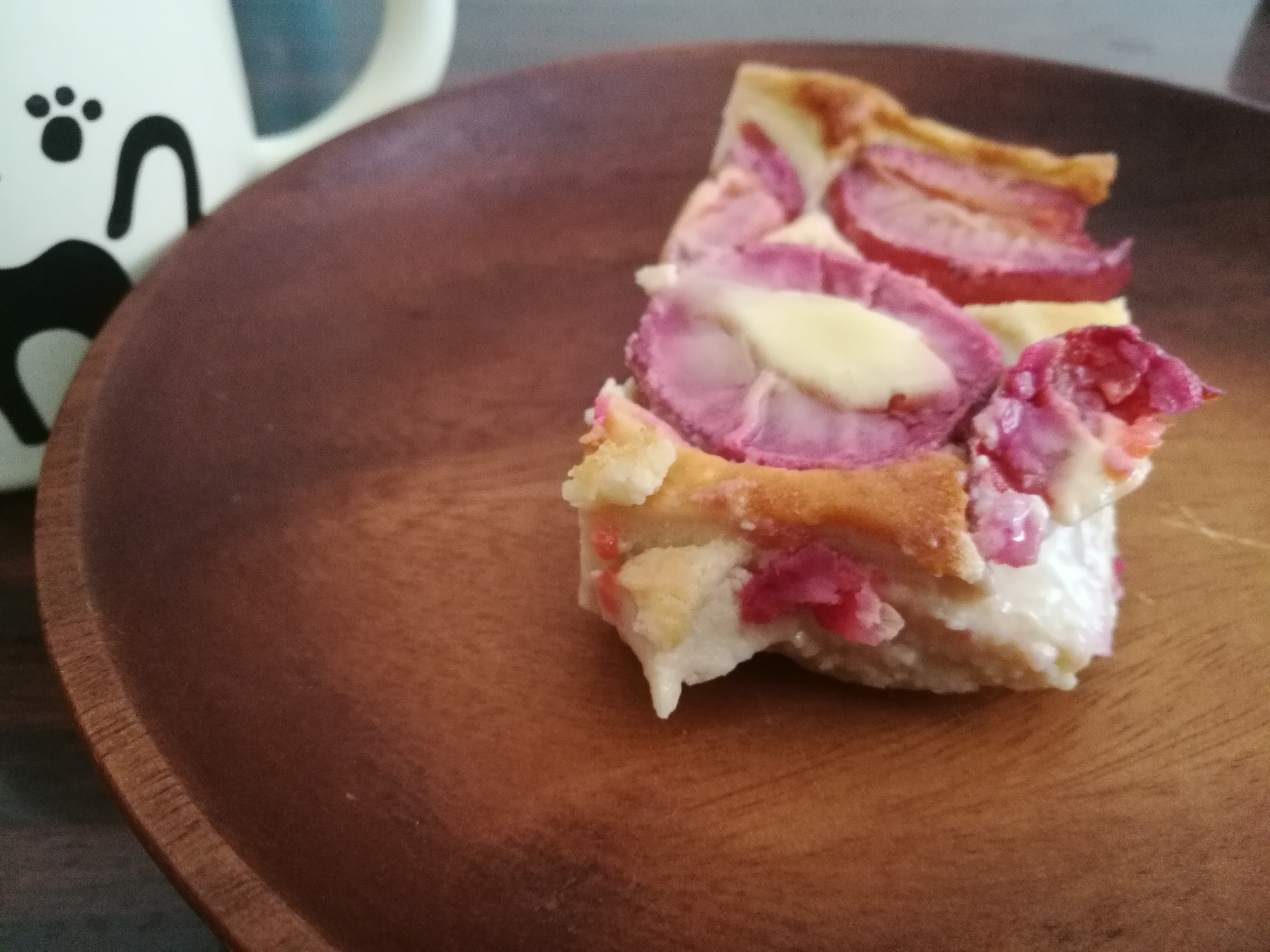 J’aime particulièrement la beauté de cette saison. Le soleil qui vous chauffe malgré l’air frais, le retour des collants ou de la cape, les arbres orangés ou rougeoyants, comme les prunes qui colorent d’une jolie teinte la crème du clafoutis…