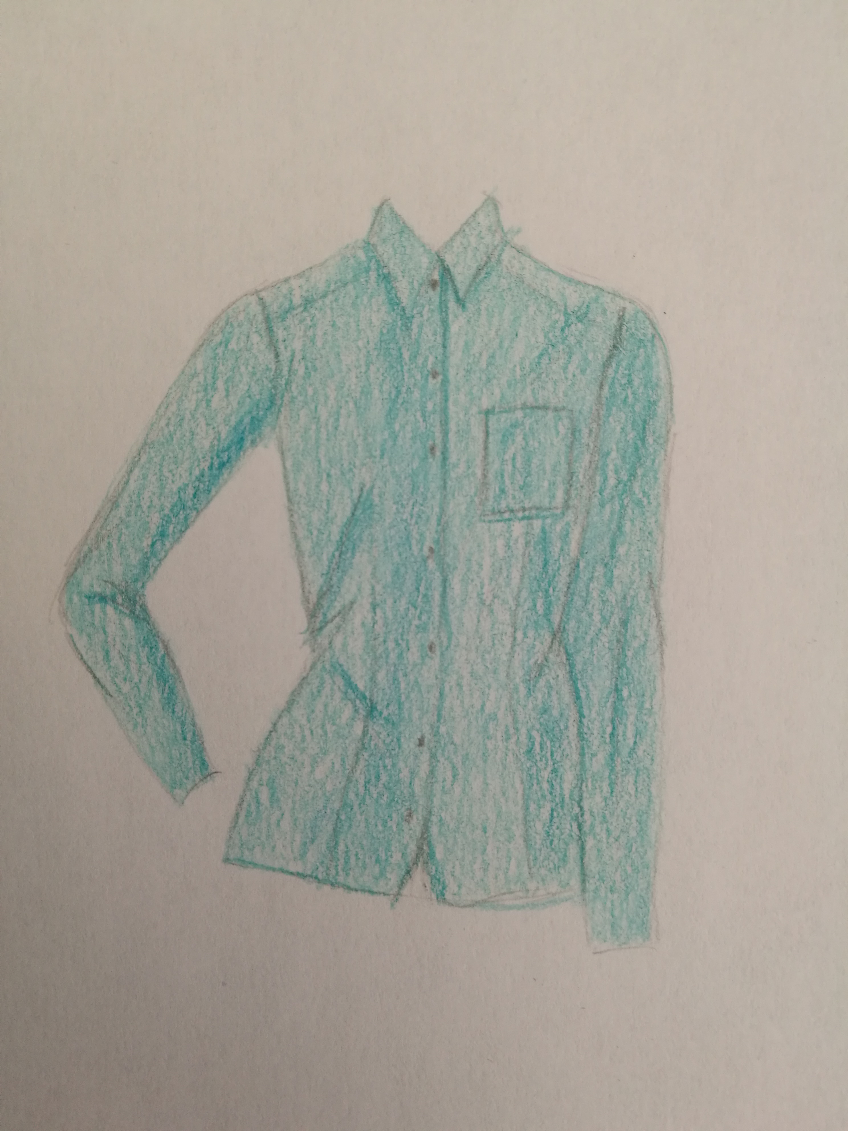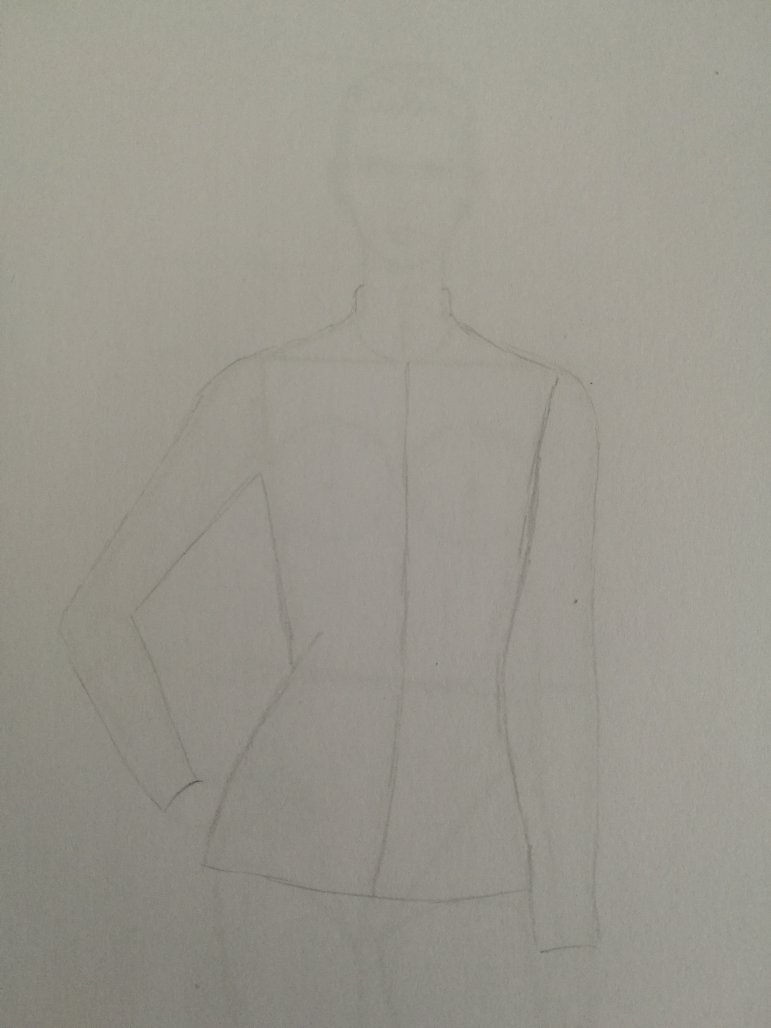 - Tracer le contour du vêtement en tenant compte du volume : le vêtement est-il moulant ou non ? Attention aux bras qui bougent ! Penser à l’espace entre le tissu et le corps ; arrondir les angles et ne pas joindre les lignes