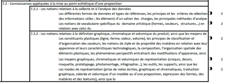 - C1.2 Lire, décoder, sélectionner et classer les informations : l’interprétation des données doit être conforme aux demandes esthétiques et techniques ; les informations retenues doivent permettre la réalisation du travail à effectuer en arts appliqués