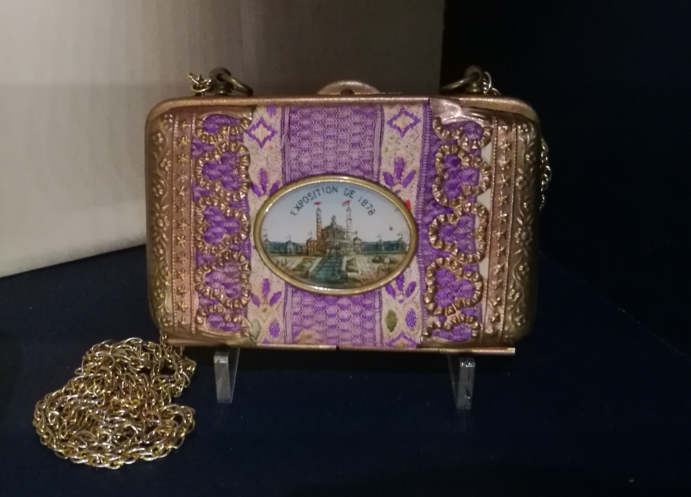 Cette exposition nous montre, en l’occurrence que le porte-monnaie n’est pas seulement un objet utilitaire, c’est aussi un marqueur social. Le visiteur sera surpris de voir que certains porte-monnaie furent réalisés à l’occasion d’événements comme, par exemple, pour la prise de la Bastille ou l’exposition de 1878, ce qui m’a rappelé que cela est le cas pour le wax. Les villes de villégiature, où la bonne société se retrouvait, avaient aussi leur porte-monnaie à leur effigie (Chamonix, Biarritz).