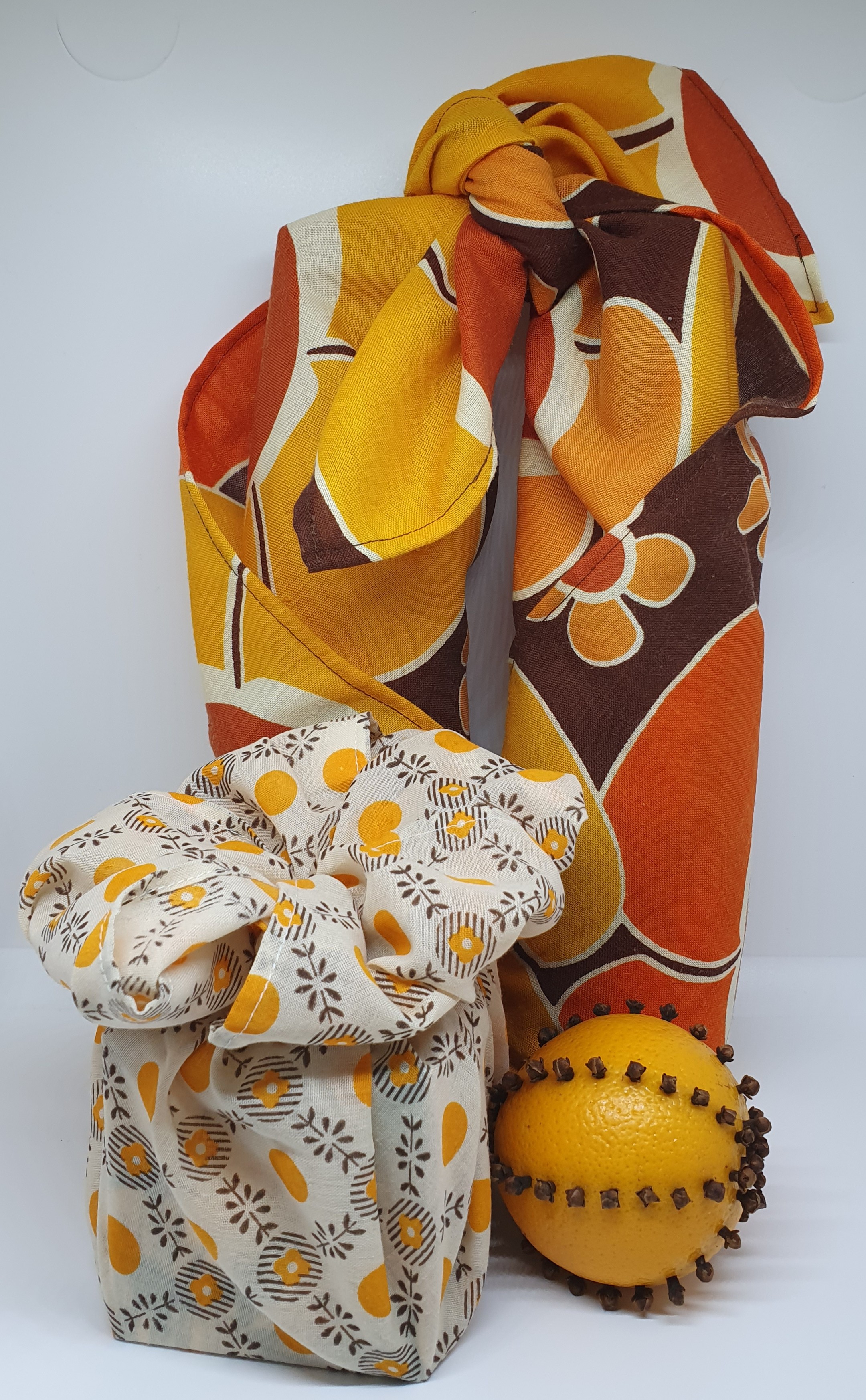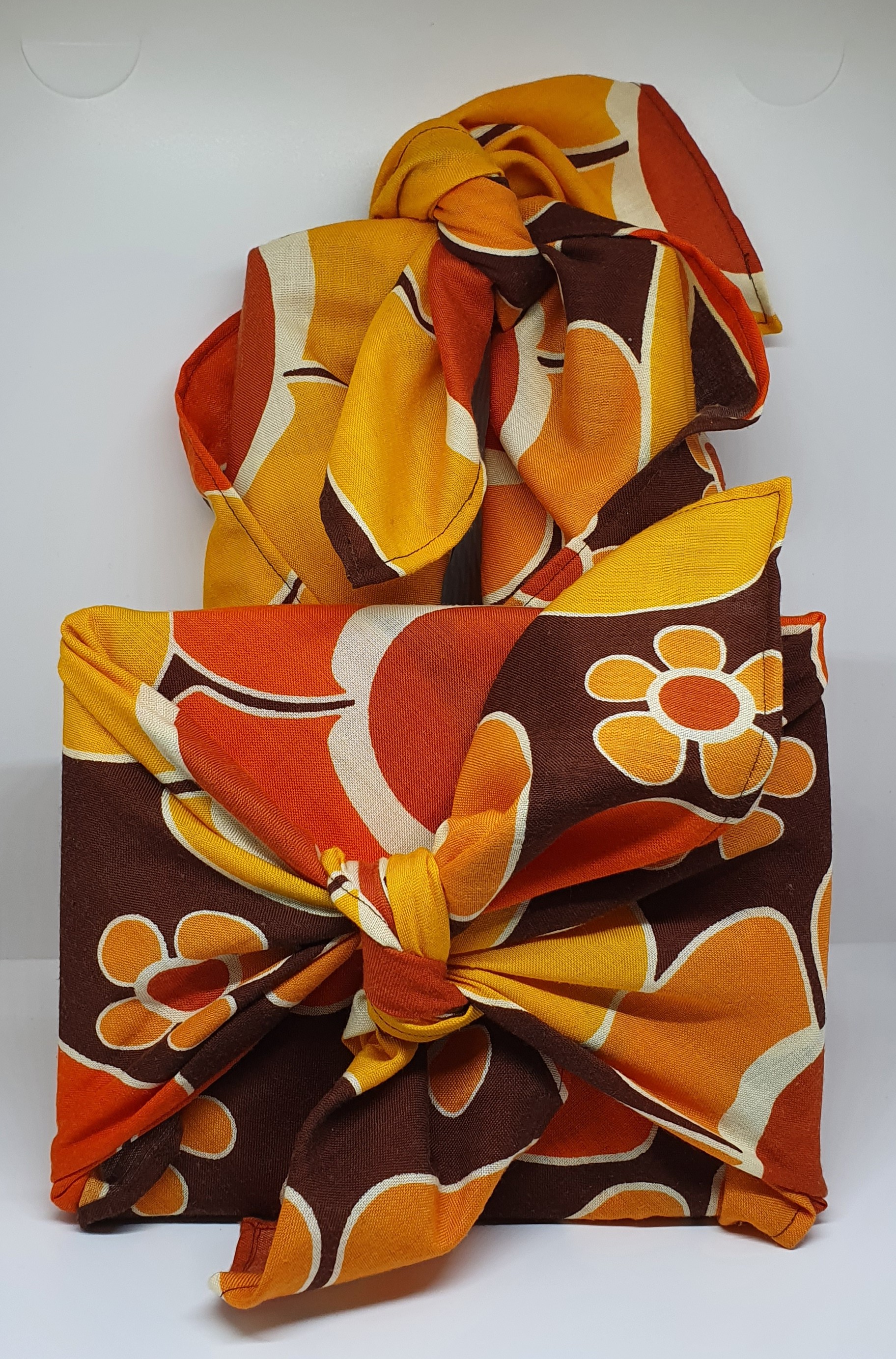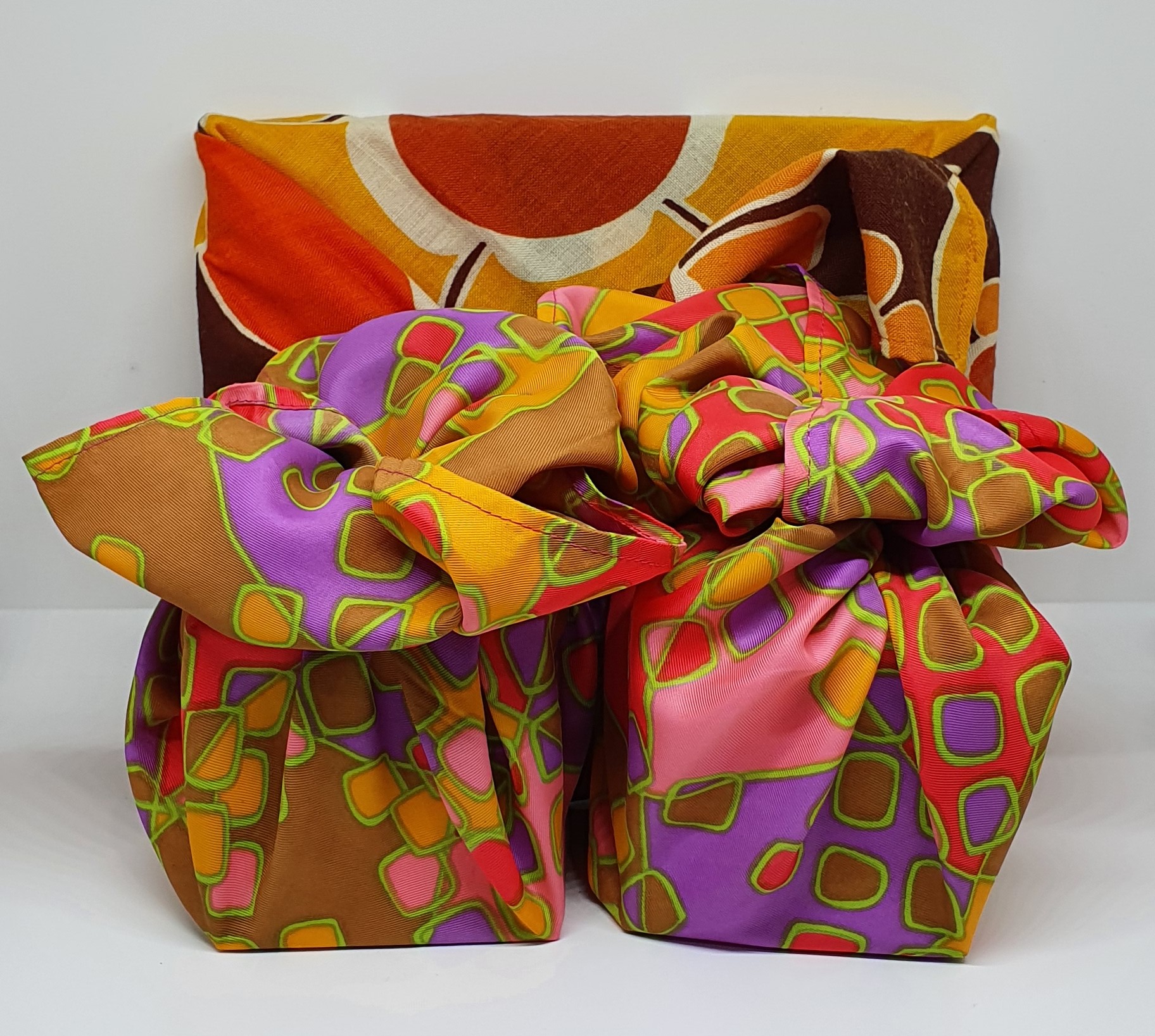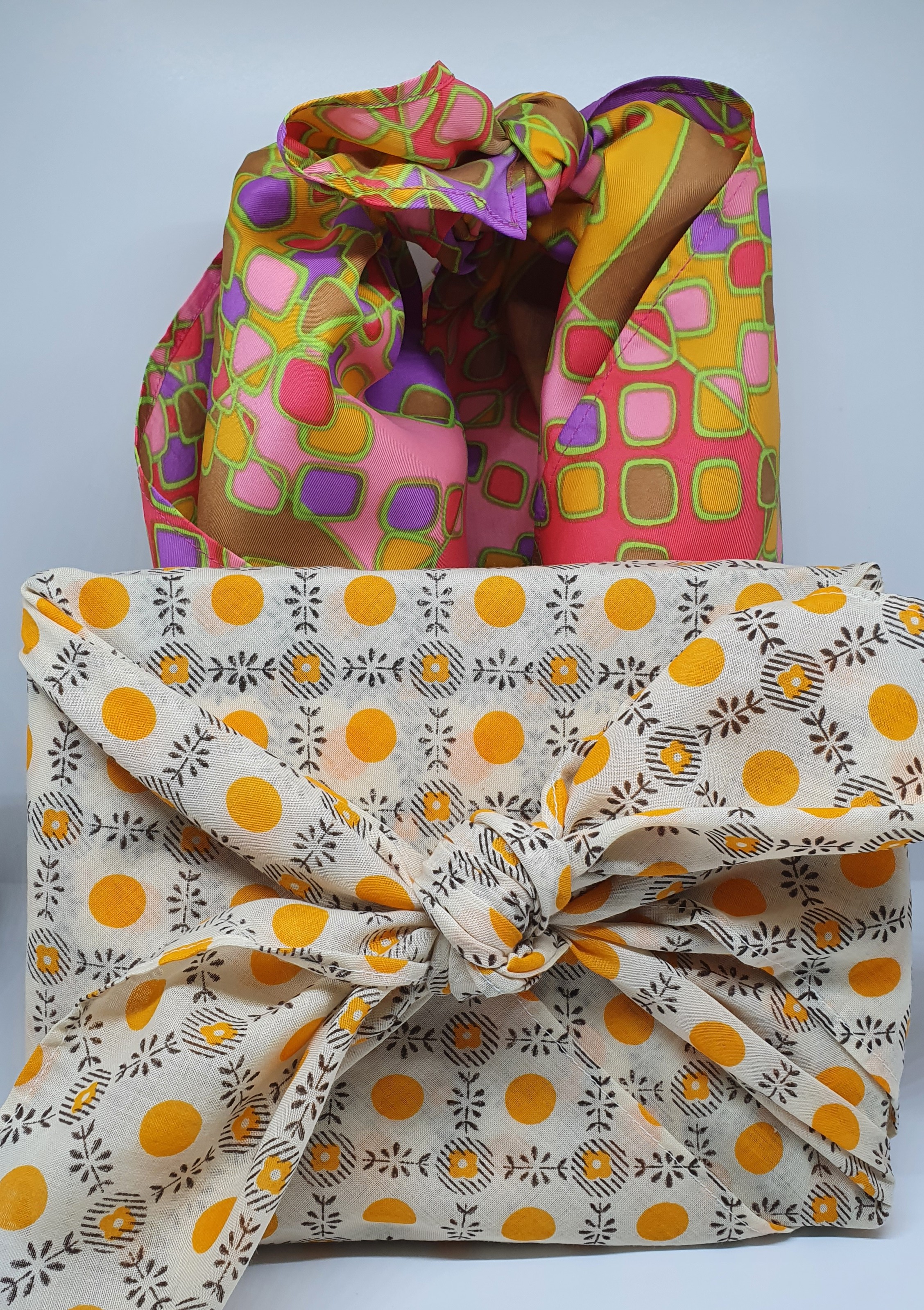 Voici une autre série de furoshiki mis en vente en mars 2021, à l’occasion des 5 ans de USeam. Il s’agit de foulards que j’ai chinés dans des ressourceries que vous pouvez utiliser comme furoshiki.