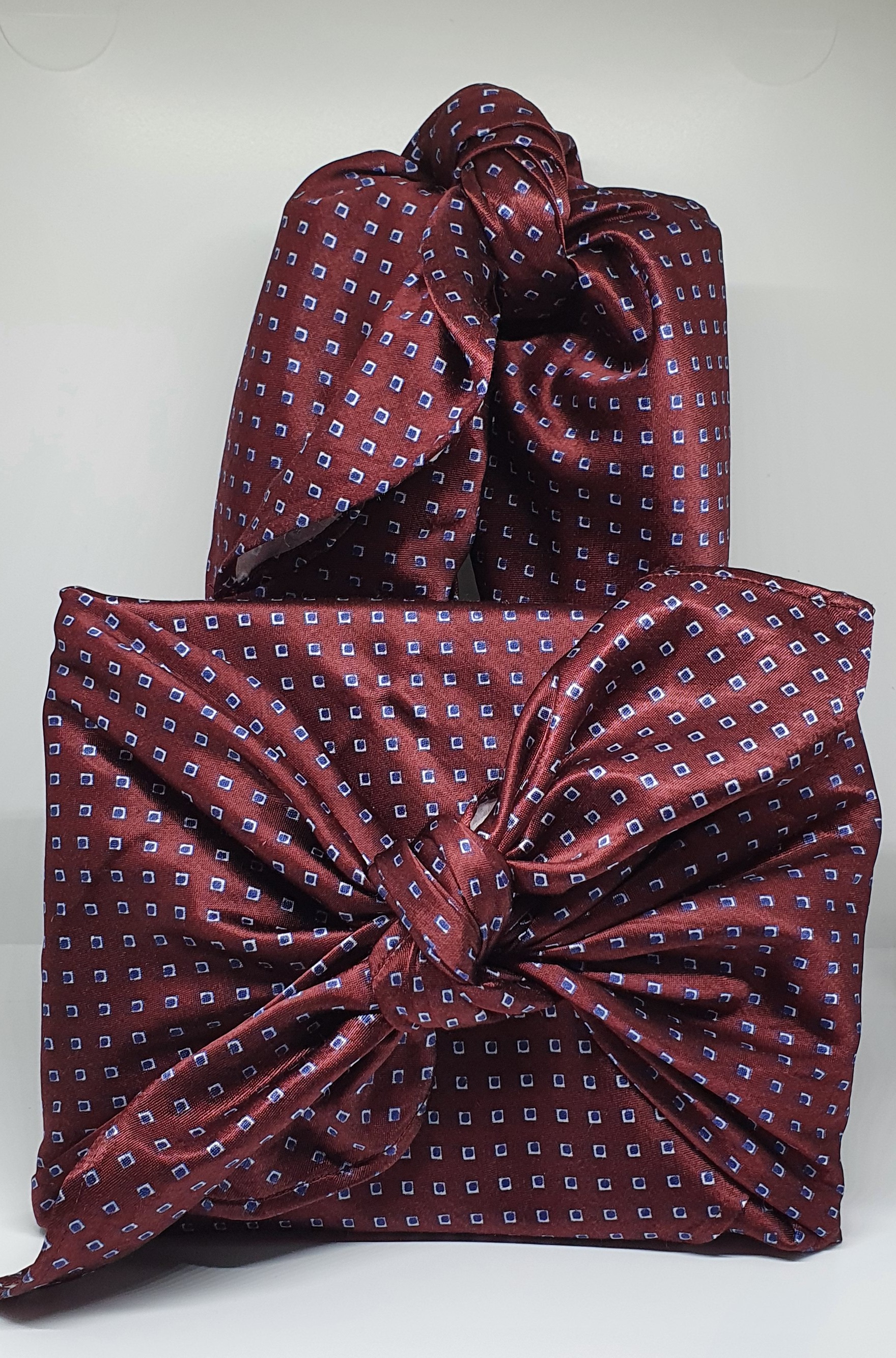 - Lot 2 en tissus upcyclés : 2 furoshiki de 50 x 50 cm, 1 furoshiki de 75 x 75 cm ;