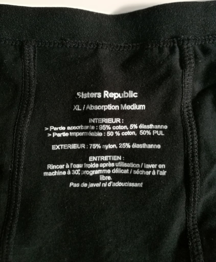 J’ai choisi comme modèle le boxer car c’est un type de produit qui, à ma connaissance, n’est pas proposé par les autres marques de culottes menstruelles, qui proposent souvent des shorties mais pas de boxers. Un premier bon point pour Sisters Republic afin de se démarquer un peu sur ce marché qui se développe de plus en plus.