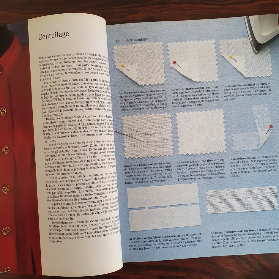 Vous ne verrez pas non plus beaucoup la technique de la pattemouille. Dans la plupart des tutoriels que j’ai lus ou vus en vidéo, les couturier.ière.s posent directement le fer sur le tissu. Cette technique, je l’ai vue dans un vieux livre de couture que je possède, c’est une sorte de bible donc je me sers tout le temps ! J’avoue que depuis que je l’utilise, je trouve que le thermocollant colle beaucoup plus !