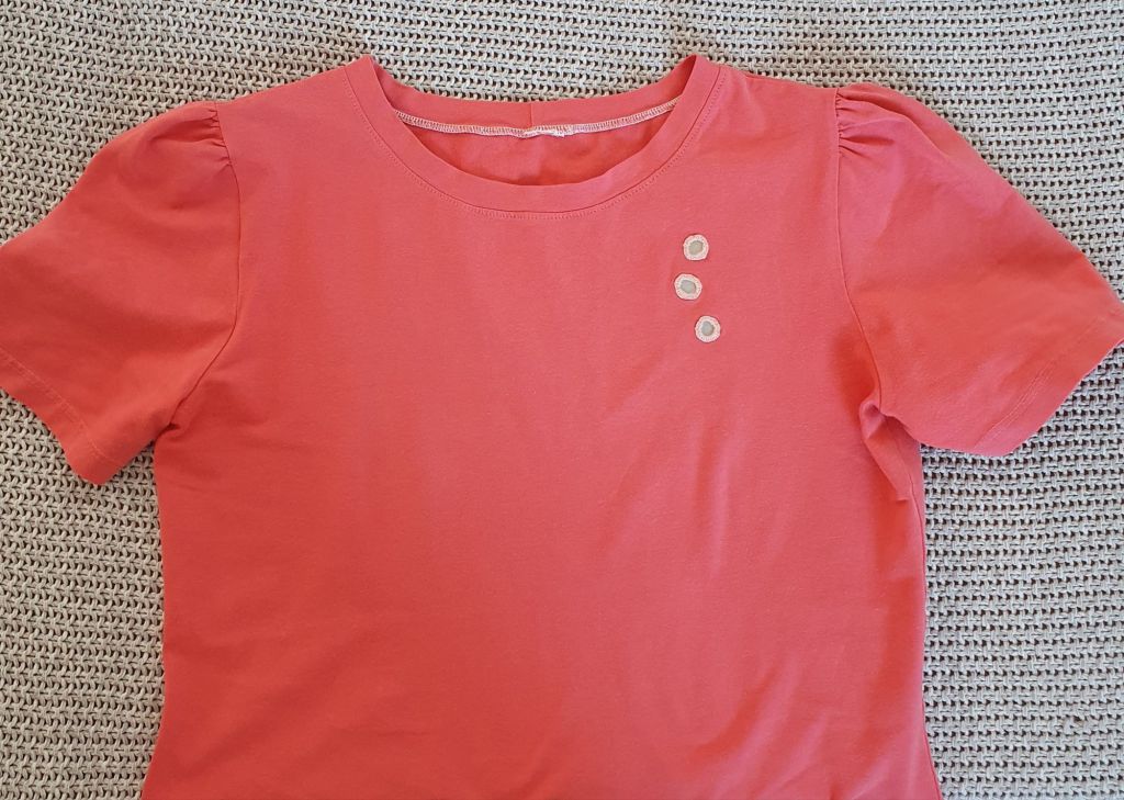 Comme d’habitude, j’ai modifié légèrement le patron pour l’adapter à ce que je voulais, en l’occurrence des manches courtes légèrement plus longues que celles du patron, comme celles du patron avec lequel j’avais réalisé mes premiers tee-shirts.