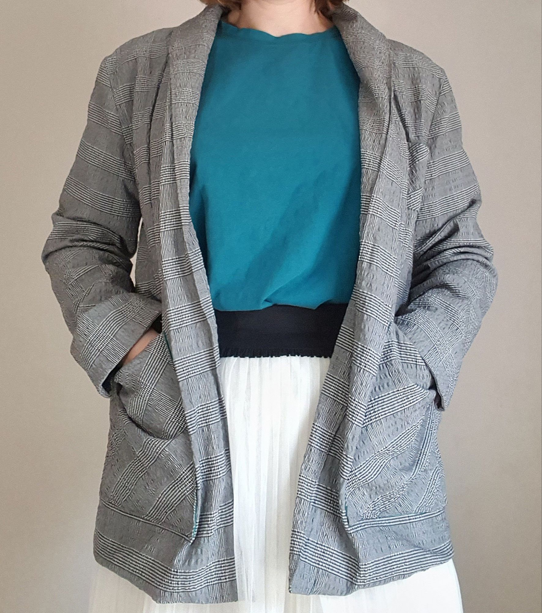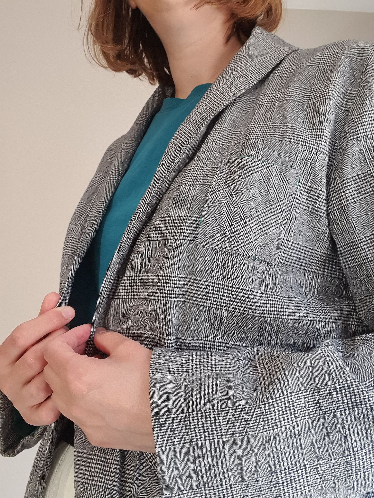 En conclusion, j’ai très vite adopté cette veste que j’ai beaucoup mise ce printemps et aussi durant l’automne dernier. Grâce à la soie, c’est un vrai bonheur de la mettre. J’ai finalement dépassé mon aversion pour le seersucker que je trouvais « de trop » en plus du motif Prince de Galles ! Cette veste est devenue une de mes pièces préférées de ma garde-robe.