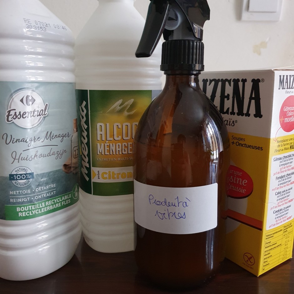 Dans la série des produits ménagers, je me suis mise à faire mon produit à vitres. Il sert également à nettoyer les miroirs ou encore les parois de ma douche. Très simple à faire, très rapide et très écologique, ce produit deviendra très vite votre allié.e pour des vitres et des miroirs impeccables. La recette vient de la chaîne YouTube de Mamy Joss dont j’utilise aussi la recette de la crème à récurer.